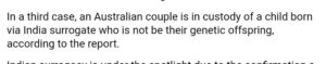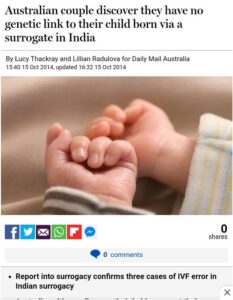 Recientemente una pareja de Australia contrató un vientre de alquiler en India e hizo pruebas de ADN al bebé que creían «suyo». Las pruebas mostraron que no tenían relación genética alguna con el recién nacido. ¿Entonces de quien era el bebé?.